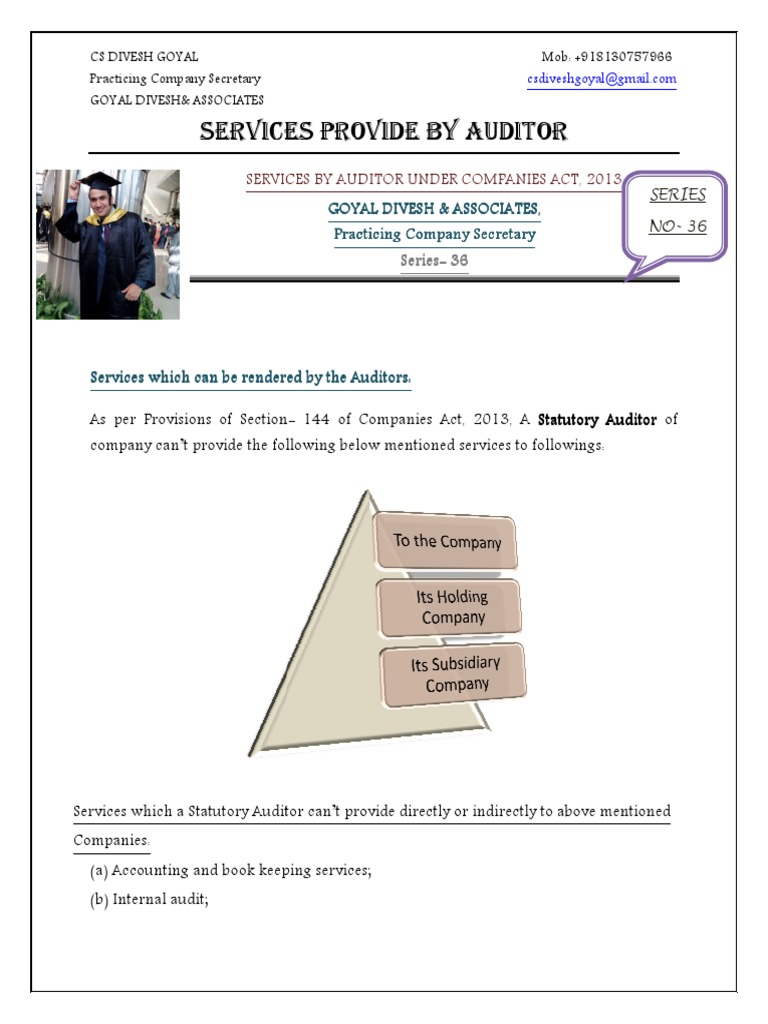 There are certain services that the statutory auditor cannot render to their cl. If an auditor has acted in contravention to the provision of section 139,143,144 or 145 then fine of the minimum amount 25 thousand which may. Auditor not to render certain services. 142 registered office of company. Copies of documents to be retained.